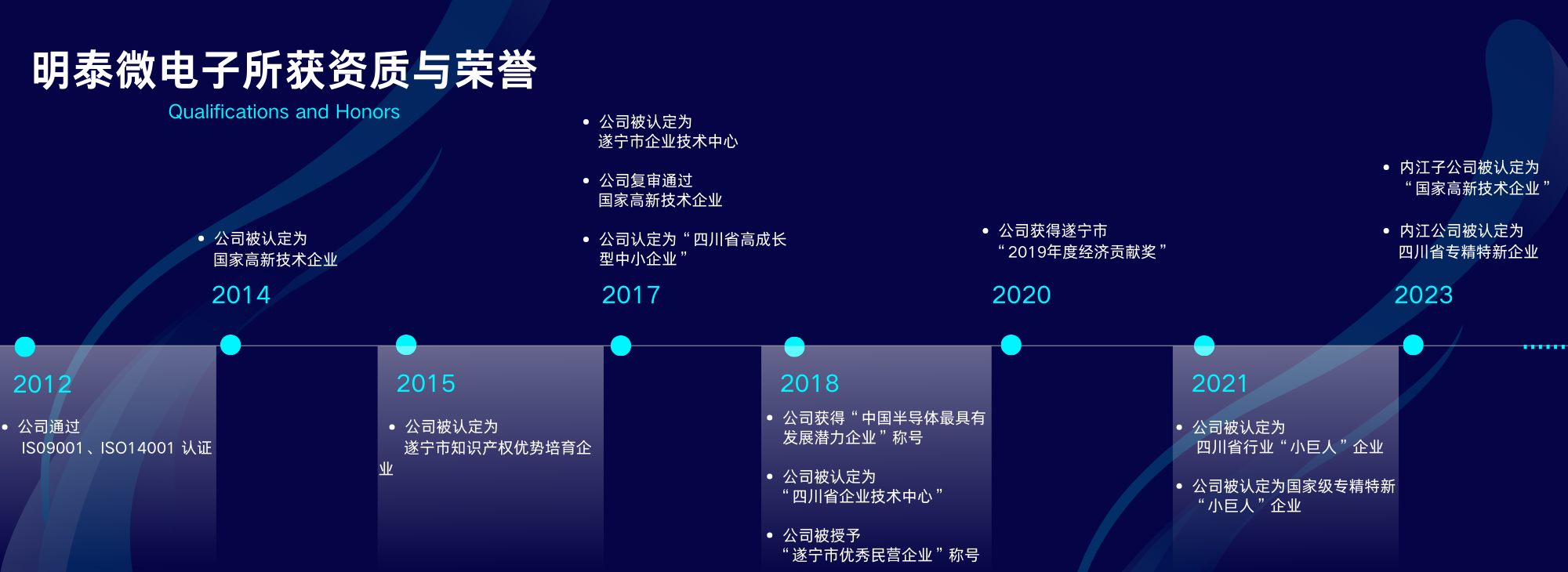 明泰微電子是一家從事集成電路和分立器件封裝與測試業務的國家高新技術企業,是目前成渝經濟圈規模最大的第三方獨立封測服務型制造企業。主營業務為集成電路和功率器件的封裝、測試和銷售,是西南地區規模最大的獨立第三方代工企業。公司現有的封裝產品主要包括DIP系列、SOP系列、TO系列、SOT系列、QFN/DFN、LQFP、LGA、PDFN、TOLL等,掌握疊層封裝、多芯片封裝等技術。